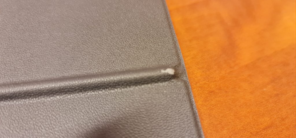 . Durch die elastische Verbindung zwischen der Befestigungsschiene und dem eigentlichen Frontcover kann dieses, gerade beim Verstauen in engen Taschen, auf dem Display hin und her rutschen. Dabei kann es durchaus auch passieren, dass sich das Tablet einschaltet und teilweise sogar einen Screenshot macht.